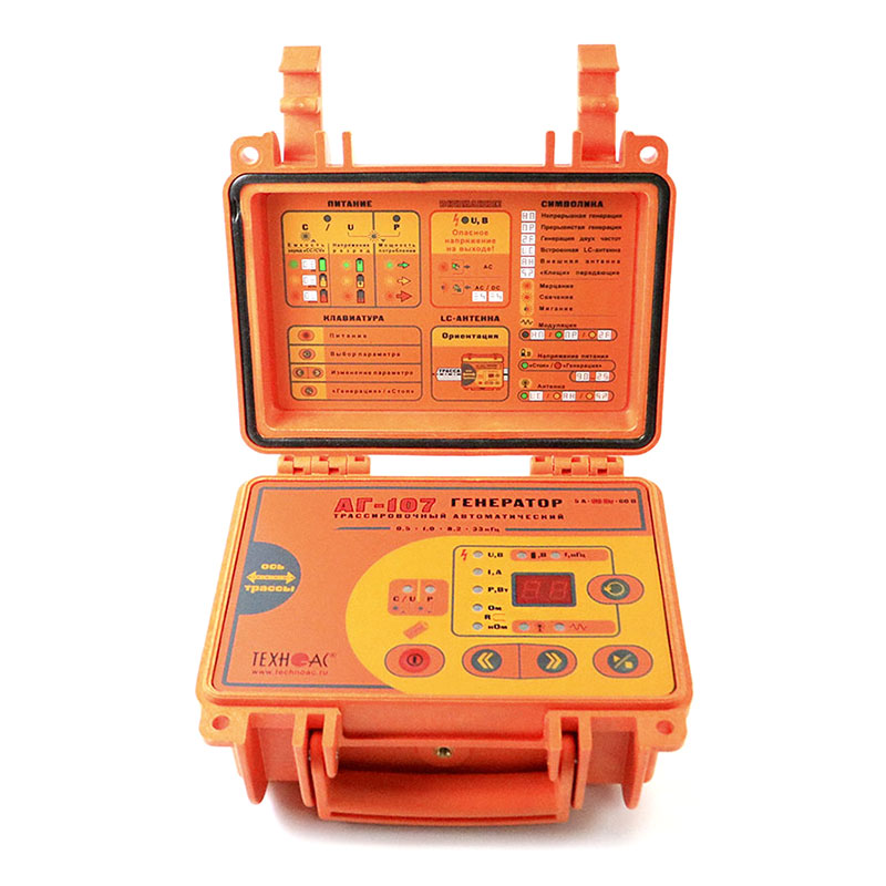 Прибор генерирует синусоидальный ток для трассировки кабелей и металлических трубопроводов при электромагнитном методе трассопоиска, двухчастотные сигналы для дефектоскопии и определения направления тока, импульсы управления ударным механизмом при акустическом методе трассопоиска (трассировка металлических и НЕМЕТАЛЛИЧЕСКИХ трубопроводов).