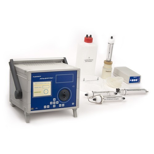 • автономная воздуходувка с пробоотборными устройствами для отбора проб при измерениях содержания радона в пробах воды, почвенного воздуха и измерения плотности потока радона (ППР) с поверхности грунта.