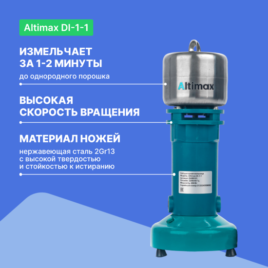 Лабораторная мельница Altimax DI-1-1 — это надежное и эффективное оборудование, предназначенное для измельчения различных материалов в научных, промышленных и медицинских лабораториях.