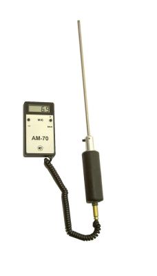 Первичный преобразователь анемометра АМ-70 состоит из датчика сигнала и блока первичной обработки сигнала (микроманометр). Принцип действия датчика аналогичен принципу действия пневмометрической трубки  (коаксиальная система из двух металлических трубок, диаметр наружной трубки – 6 мм, диаметр внутренней трубки – 2 мм, минимальная длина – 250 мм, максимальная – 0,75 м). Микроманометр размещен в цилиндрическом корпусе, жестко соединенном с датчиком через пневморазъем, и выполняющим функцию ручки, с помощью которой датчик удерживается в необходимом положении.