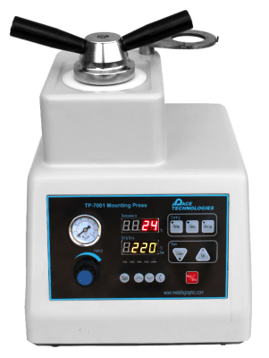 Автоматический пресс для фиксации образца в компаудах перед шлифовально-полировальной подготовкой к металлографическому анализу. Для запрессовывания используются сменные формы диаметром 25, 30, 40 и 50 мм и промежуточные вставки для одновременного запрессовывания двух образцов.
