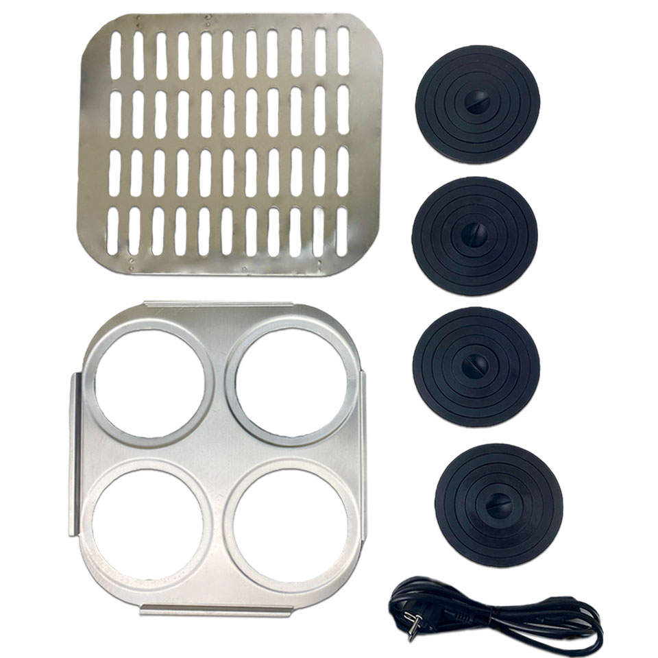 • Система из 4-х концентрических колец позволяет размещать в ванне различные колбы объемом до 1 л, стаканы, чашки для выпаривания и т.д.;