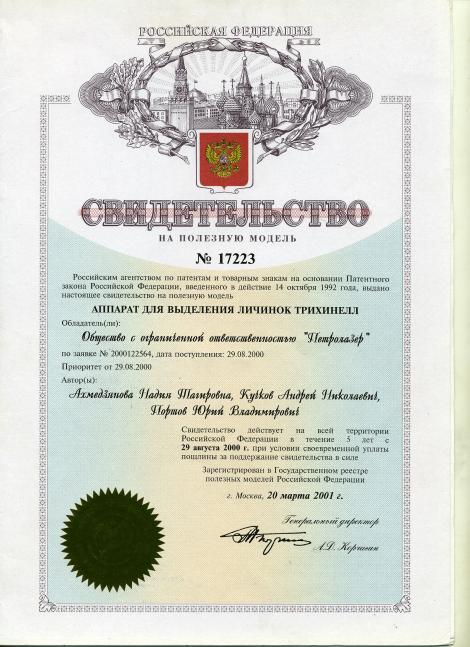 Свидетельство на полезную модель ГАСТРОС