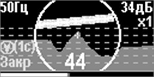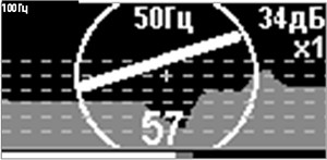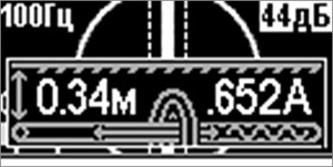 На индикаторе дополнительно с положением трассы отображается график изменения уровня сигнала на рабочей частоте. Режим «График» удобен при слабом уровне сигнала или в случае, когда электромагнитное поле искажено.
