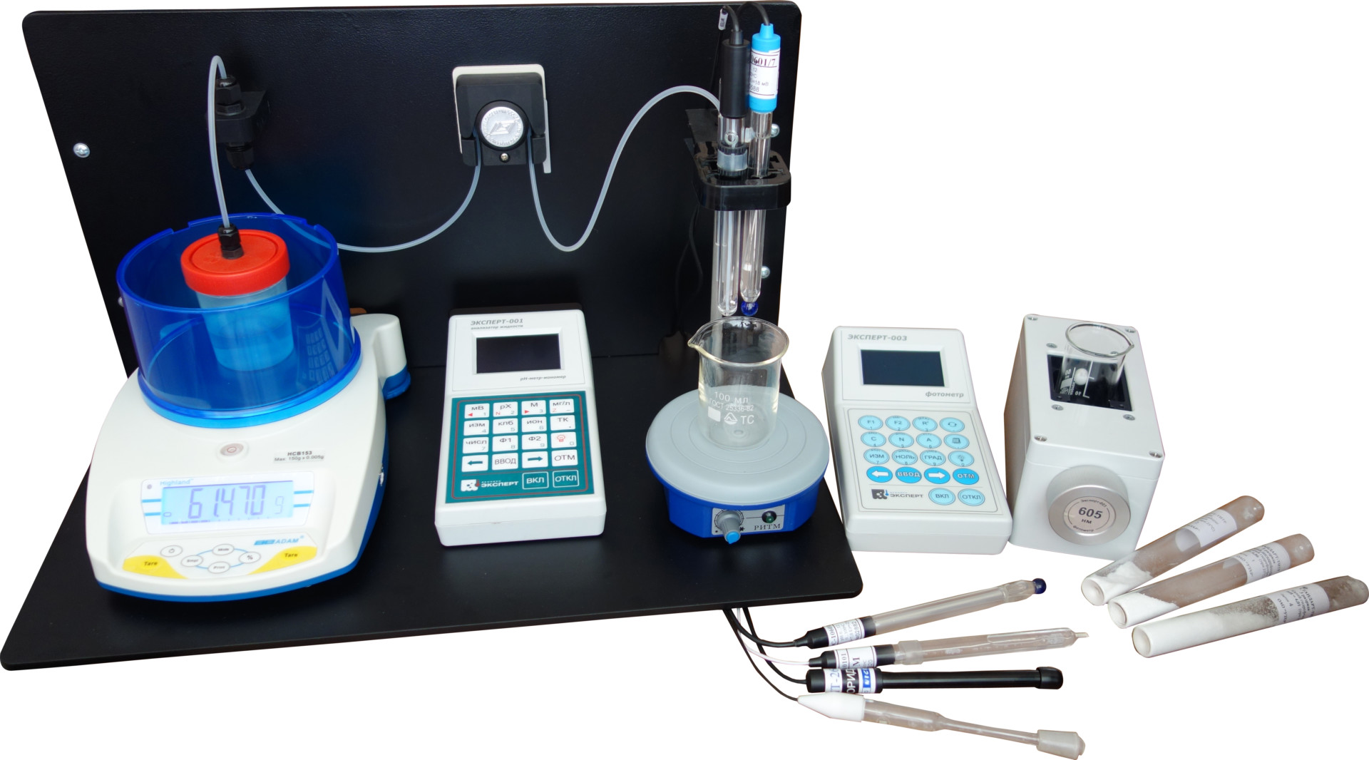 Комплект включает оборудование для автоматического титрования двумя методами: потенциометрическим (измерение ЭДС электродных систем анализатором «Эксперт-001») и фотометрическим (измерение оптической плотности раствора при изменении его окраски фотометром «Эксперт-003»). Представляет собой комплект «Титрион-1-3» (или «Титрион-1-3А»), укомплектованный электродными системами и сменными источниками излучения.