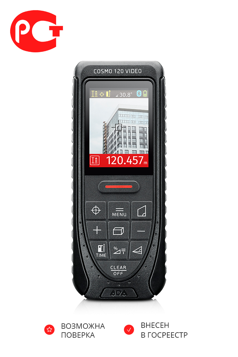 Лазерная рулетка ADA COSMO 120 Video новинка 2017 года на рынке профессиональных лазерных рулеток. Уникальное сочетание цифрового визира и 360° датчика наклона позволяет проводить измерения, которые не возможно выполнить с обычными лазерными дальномерами.