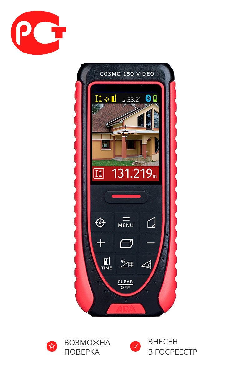 Точность и дальность. Лазерная рулетка ADA COSMO 150 Video предназначена для измерений больших дистанций до 150 метров. Погрешность измерения не превышает ±1,5 мм.