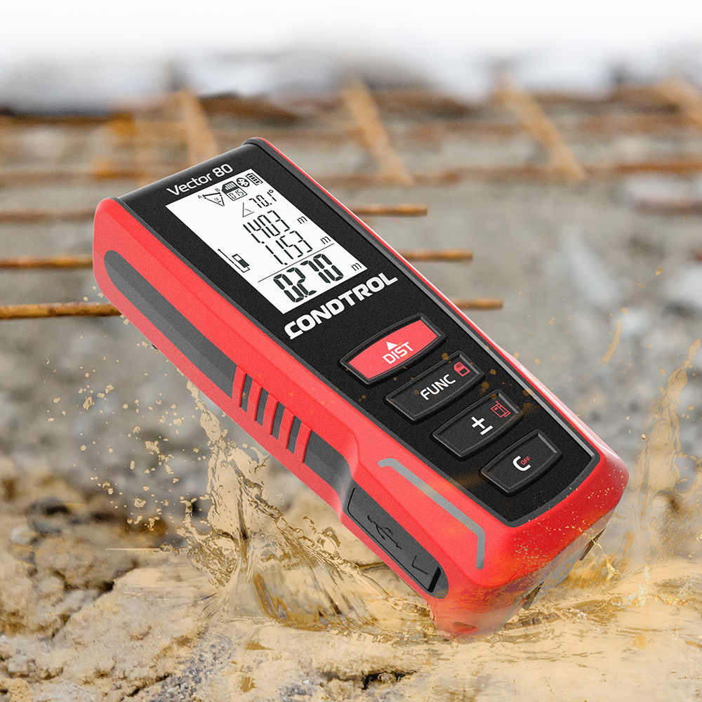 CONDTROL Vector 80 – современный лазерный дальномер, предназначенный для быстрого и точного измерения расстояния до 80 м. Большой набор вычислительных функций, пылевлагозащищенный корпус, модуль Bluetooth позволяют использовать CONDTROL Vector 80 в профессиональной среде. Главная особенность – встроенный 3D-акселерометр, с помощью которого можно вычислить расстояние между двумя произвольными точками в пространстве.