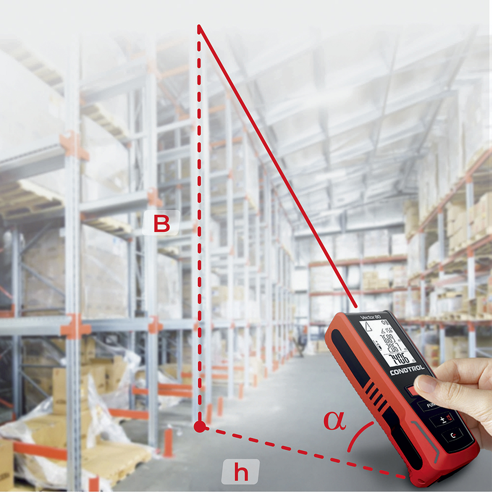 Функция Point-to-Point — Лазерная рулетка CONDTROL Vector 80 может измерять расстояние между двумя произвольными точками в пространстве, благодаря встроенному 3D- акселерометру. Таким образом, вы сможете всего по двум замерам определить длину отрезка, проходящего сквозь здания или препятствия (стена, деревья, забор).