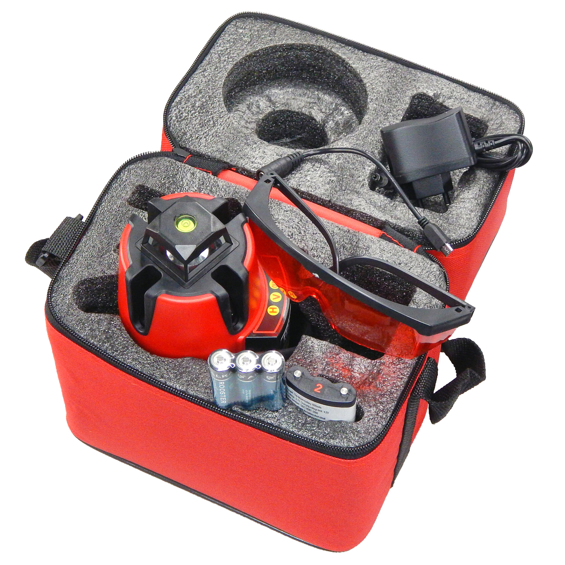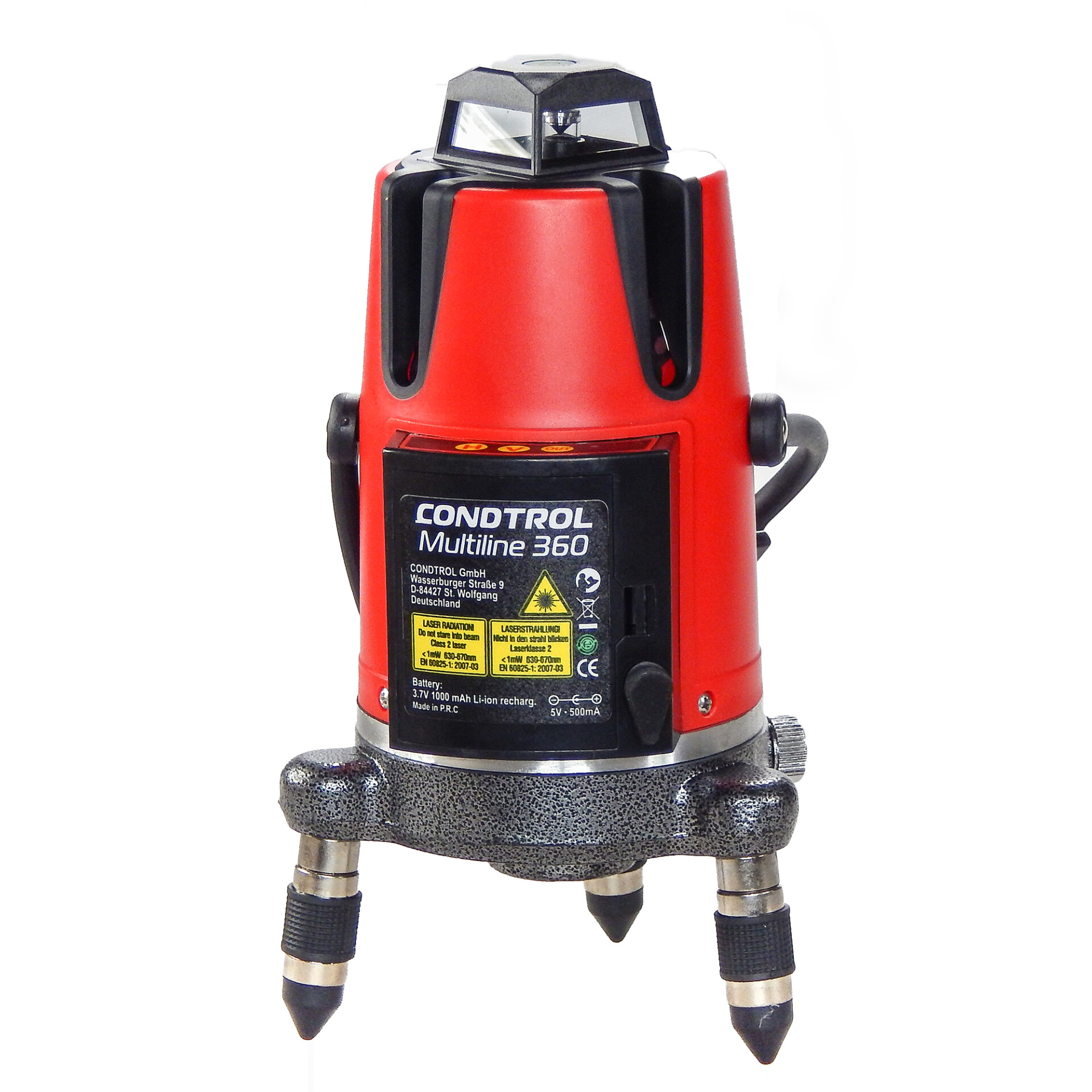 CONDTROL Multiline 360 оснащен литий-ионным аккумулятором, обеспечивающим непрерывную работу нивелира до восьми часов. Благодаря встроенной системе заряда аккумулятора нивелир может работать от сети двести двадцать вольт и одновременно заряжаться, что позволяет экономить время при разметке помещений. Встроенный в аккумулятор разъем MicroUSB позволяет производить зарядку вне корпуса прибора, при этом аккумулятор можно заменить на традиционные щелочные батарейки формата АА. Лазерный нивелир CONDTROL Multiline 360 можно устанавливать на штатив или штангу с резьбой пять восьмых дюйма.