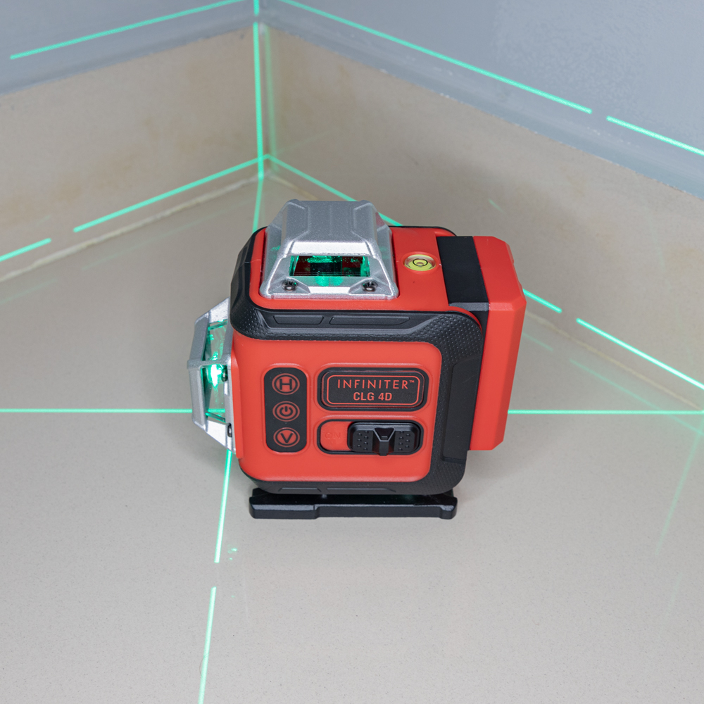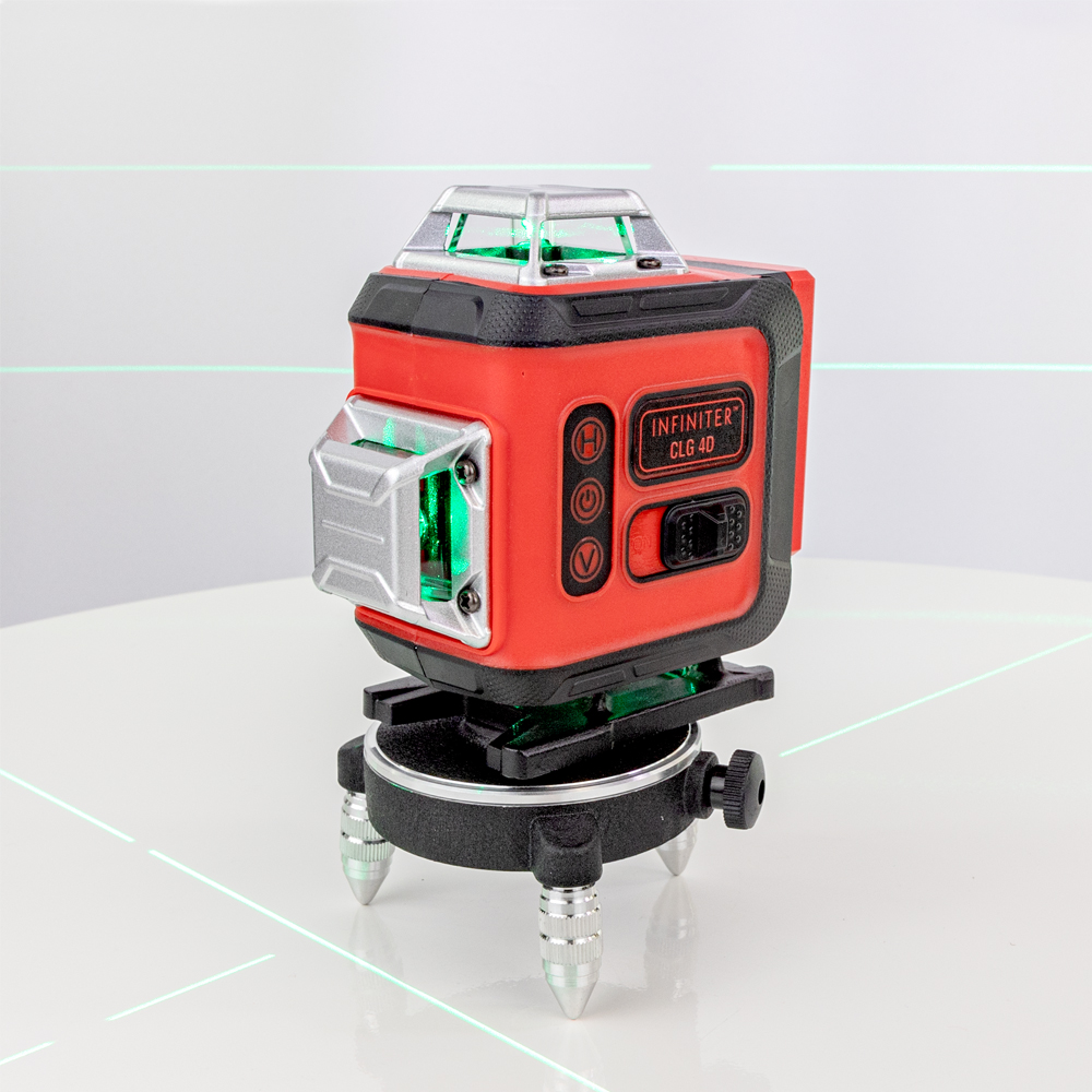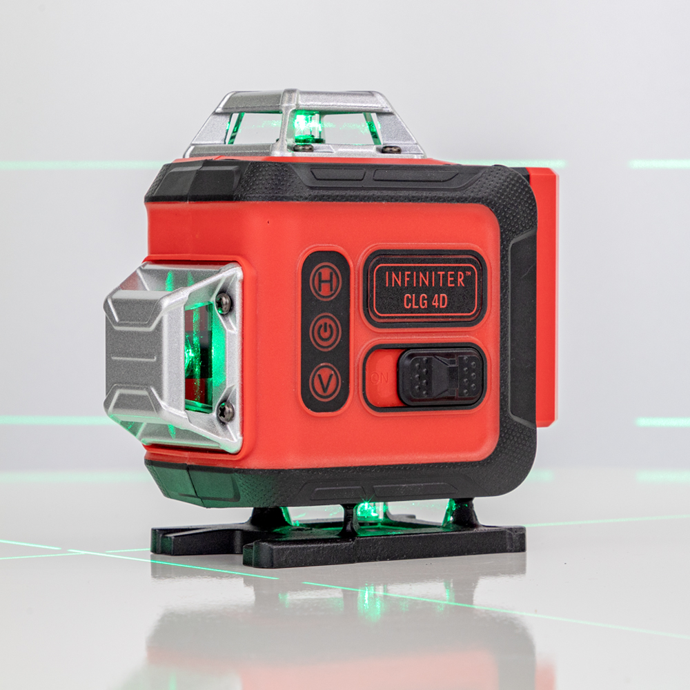 Лазерный нивелир INFINITER CLG 4D проецирует две вертикальные и две горизонтальные плоскости с углом развертки 360°.