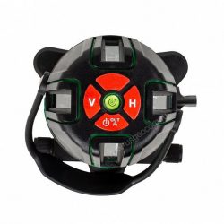 Нивелир проецирует пять линий: четыре вертикальных с развёрткой 120° и горизонтальную с углом в 110°. Вертикальные линии проецируются на 120° и заходят на потолок, формируя перекрестие над прибором. В сочетании с лазерным отвесом это позволяет использовать устройство для переноса точек по вертикали. Например, при разметке светильников. Управление осуществляется тремя кнопками: включения, переключения вертикальной и горизонтальной линий.