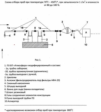 МК-ПУ «Аэрозоль» - конструкция на основе применения модифицированного ПЗ БП «Атмосфера», каплеотбойников, ванны-охладителя и предназначена для использования в комплекте оборудования, входящего в состав методик выполнения измерений (МВИ), аттестованными в установленном порядке с учетом требований ГОСТ Р 50820 – 95 «Оборудование газоочистное и пылеулавливающее. Методы определения запыленности газопылевых потоков».