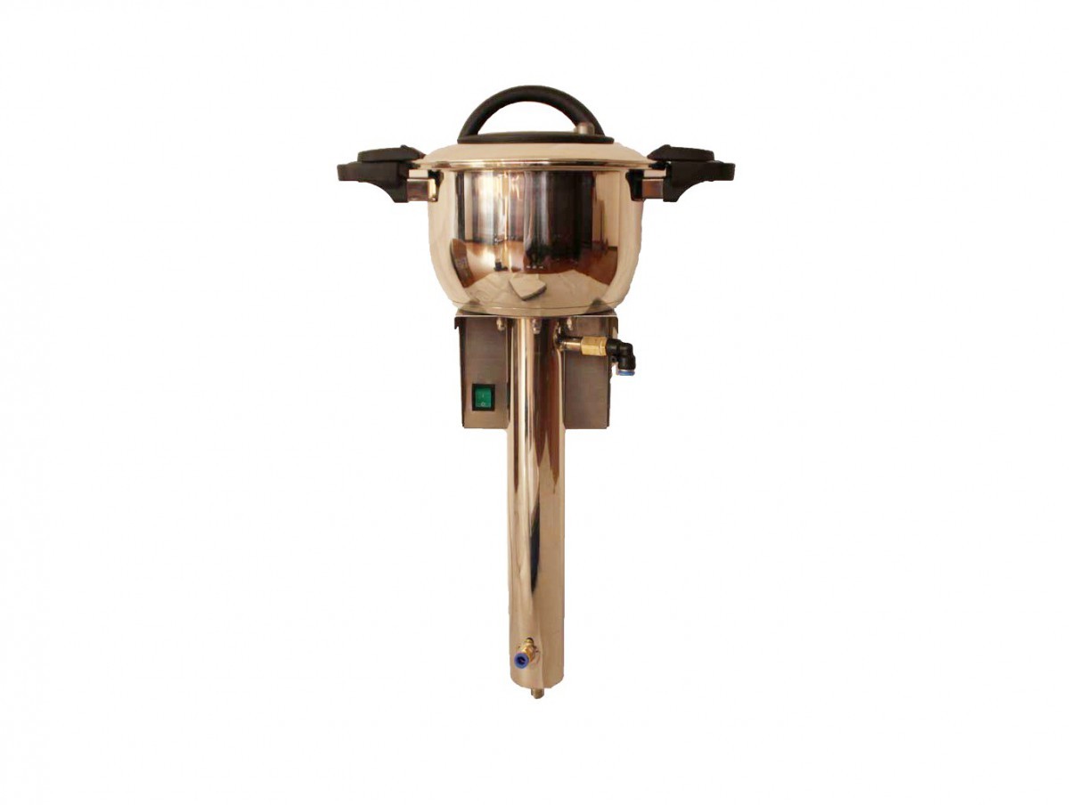 Эффективный конденсатор в виде спиральной трубки обеспечивает хороший теплообмен и высокий выход дистиллированной воды.