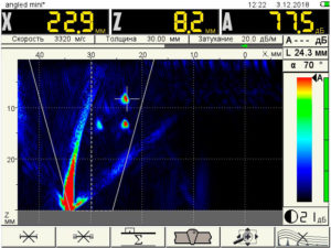 • Обеспечение высокой частоты смены изображений на экране, при которой скорость сканирования вдоль сварного соединения может достигать 50 мм/с.