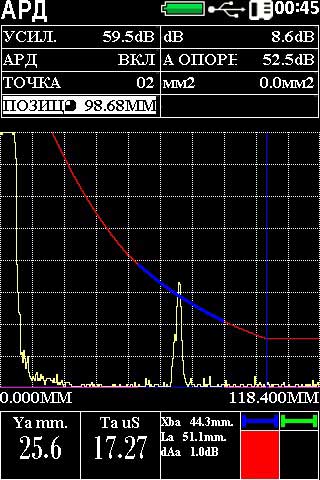 • режимы: огибающей, заморозки и отображения хода луча для удобства проведения дефектоскопии