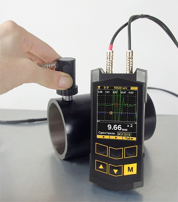 Измерение толщины стенок металлических и неметаллических изделий специального и общего назначения (в том числе под защитными покрытиями толщиной до 2 мм) в диапазоне толщин от 0,25 до 300 мм с использованием совмещенных и раздельно-совмещенных преобразователей, обеспечивающих высокую достоверность результатов в лабораторных, цеховых и полевых условиях.