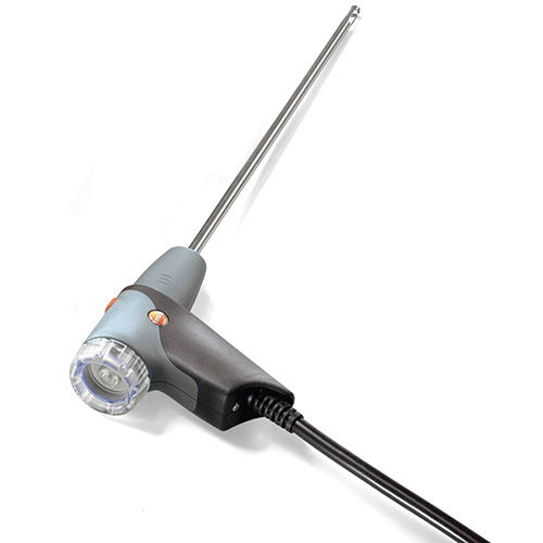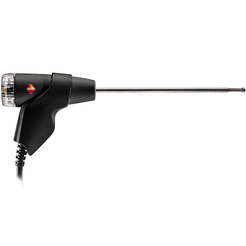 Модульный зонд отбора пробы, одобренный TÜV, длина 180 мм, оснащен системой легкой замены трубки зонда. Термопара NiCr-Ni, встроенная в зонд, позволяет измерять температуры до +500 °C. Канал дымового газа и канал температуры можно удобно подключить к прибору с помощью байонетного соединения. Кроме того, встроенный фильтр защищает прибор и его сенсоры от загрязнения.